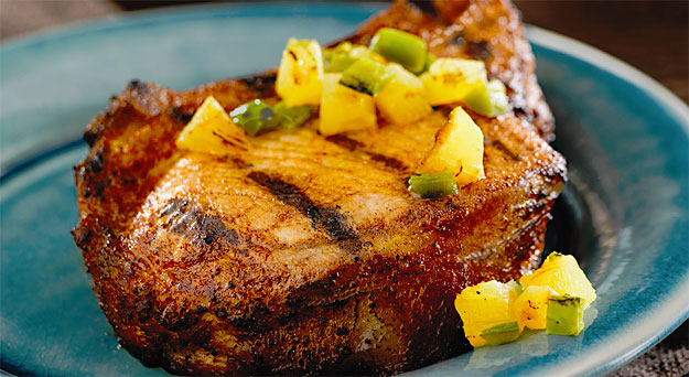 Featured Recipe: Chili-Rubbed Pork Chops With Grilled Pineapple Salsa