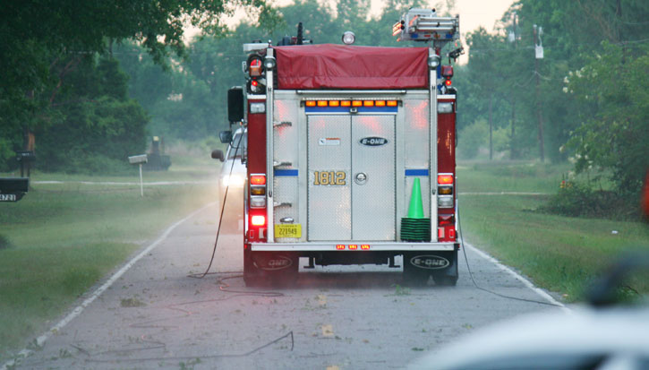 Those downed power lines caused problems for three volunteers with the Molino Station of Escambia Fire Rescue. While responding to damage reports, their fire truck collided with falling power lines on Barrineau Park Road just west of Barrineau Park School Road. After hitting the Gulf Power lines, the truck became entangled in additional downed lines.