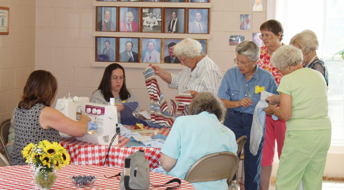 The Molino Homemakers recently made adult-size bibs for rehabilitation patients at West Florida Rehabilitation Institute.