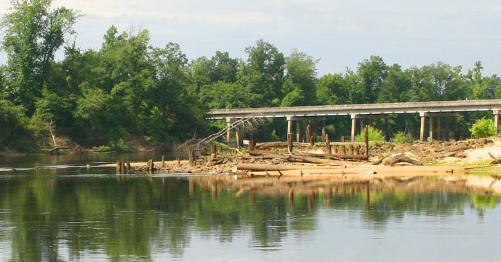 Pictured above: The Escambia River as seen from Fischer Landing in Century. During periods of flooding, the river will almost reach the bottom of the bridge. Pictured below: The Escambia River is approaching record low levels, with a pier to nowhere and a boat ramp that does not reach the water as seen at the Molino Boat Ramp on Fairgrounds Road.