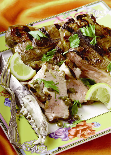 To serve, slice and season with the salt, pepper, lemon juice, capers and parsley.