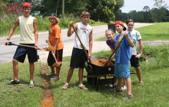 Pictured above: Youth involved in Mission Molino did yard work for eight widows on Monday. Pictured below: The students took part in a Mission Molino project on Pensacola Beach. Submitted photos for NorthEscambia.com, click to enlarge.