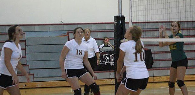 Catholic defeated Central in a three game, non-district match, 14-25, 16-25, 16-25.