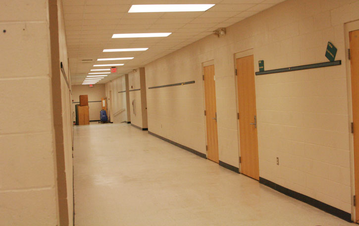 Pictured top: A small, temporary sign marks the new location of Pensacola State College’s Century center at the old Carver/Century K-8 School. Pictured below: The interior of the building as seen Tuesday, August 16. NorthEscambia.com photos, click to enlarge.