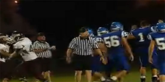 Pictured above: WEAR 3’s camera caught the very end of an altercation at Friday night’s kickoff classic game between Baker and Jay. Courtesy photo for NorthEscambia.com, click to enlarge.