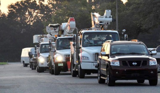 Pictured above and below: Gulf Power crews prepare to depart Pensacola Friday morning for Washington, D.C. to assist with power restoration after Hurricane Irene makes landfall. Courtesy photos for NorthEscambia.com, click to enlarge.