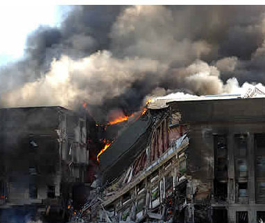 I stood flabbergasted as the tragedy unfolded. To my disbelief a second jet slammed into the Twin Towers. My memory is a bit fuzzy of what happened next, but as I recall, soon afterwards the Pentagon shuddered and shook. My co-workers and I looked at each other not sure of what had just happened. That sure seemed like one helluva sonic-boom I thought to myself. Having come from the “Blues” my mind still operated in the aviation world of thinking. The phone rang. I answered it. It was one of my guys who, was off for the day at home just across the Anacostia River at Bolling Air Force Base. He asked me if we had just been attacked. I said “is that what that was?” I said I wasn’t sure, there were no alarms going off. He said he thought so because looking from his back yard black smoke was pouring out of the Pentagon. Someone went out to investigate. They quickly came back. All they said was, “We gotta go.”