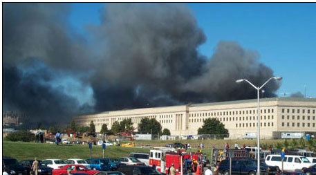 Fortunately several members had grabbed their cell phones. The airways were jammed, but after repeated attempts we were able to get a hold of my boss. He instructed us to get to the American Forces Information Services (AFIS) in Alexandria, where he currently was and where we would set up shop. There was imagery to get out to the world. The story needed to be told. Because none of us had access to our cars we made our way to the nearest metro station. I tried repeatedly, but couldn’t reach my wife. I was scared. Fortunately I was able to contact a neighbor who would pick my kids up from school. Once at AFIS we went into action setting up a temporary JCCC – still and video imagery started to come in. Sec Def wanted his imagery. Hours later after repeated attempts I finally was able to get a hold of my wife. She was safe. Her plane had been delayed because of the tragedy. She had spent her time desperately trying to get a hold of me, fearing for the worst – widow hood. I assured that her I was un-harmed and that the kids were safe with a neighbor. We cried for our good fortune and the mis-fortune of others. I thanked God for watching over me and my family. I had been less than a hundred yards around the corner from the crash site. Late that night in the safety of my home with my kids snug in bed I realized that a week earlier before moving into the newly renovated wing, JCCC had been located in the area of impact and that a few of my office mates and I would have been in the old office that morning to make sure we had moved everything, but had not because we had been watching the Twin Towers tragedy on TV. I sighed with relief. It had been a close call.