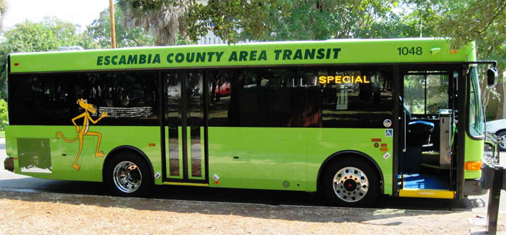ECAT’s routes encompass the entire length of Escambia County from Century to Pensacola Beach, with North Escambia buses from Century, Molino and Cantonment connected to routes across Pensacola. In late 2010, older, larger buses on the North Escambia “Route 60″ were replaced with smaller, more fuel efficient buses (pictured below).