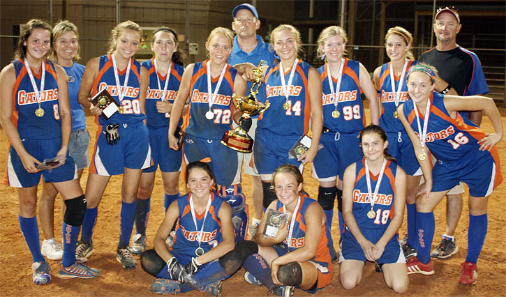 Team members for the 14U Perdido Gators are Mallory Ryan, Sydney Ezelle, Sara Spears, Ali Cutaio, Tori Perkins, Lauren Brennan, Angel Lathan, Morgan Peppers, Kota Berry, Kristin Gunter and Rachel Wright Coaches for the Gators are Tracy Ezelle, Jeff Cutaio, Eddie Ryan and Greg Spears.