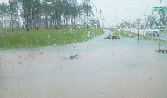Pictured above: Flooding at Highway 95A and Quintette Road this afternoon. (Submitted photo for NorthEscambia.com by Diane Lowery, click to enlarge.)