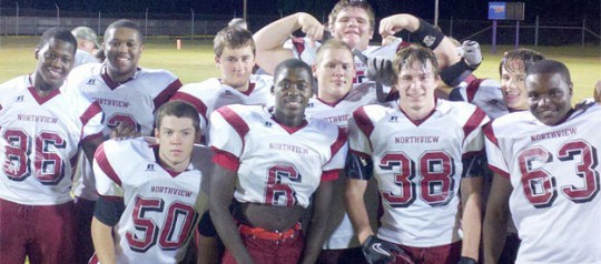 Pictured: The Northview Chiefs celebrate after their first win of the season Friday night in Marianna. Submitted photo for NorthEscambia.com, click to enlarge.