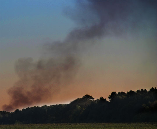 Pictured above: Smoke from an Enon tire fire could be seen from Highway 97 in Walnut Hill, about 10 miles away. NorthEscambia.com photo, click to enlarge.