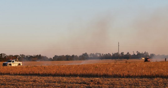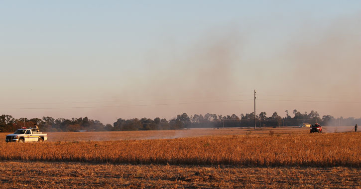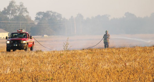 Firefighters from Walnut Hill and Century responded to a brush fire in Bratt late Friday afternoon that was sparked by a combine. The fire on Bratt Road just east of Vaughn Road scorched only a small area in a soybean field. Their were no injuries reported. NorthEscambia.com photos, click to enlarge.