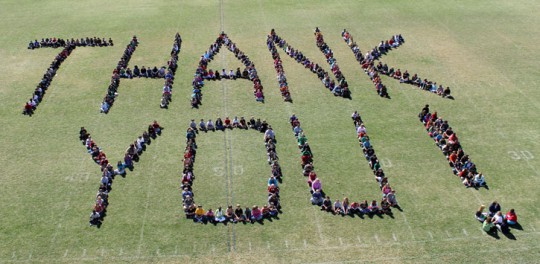 >>Just curious how the thank you picture on the football field was taken? A plane?