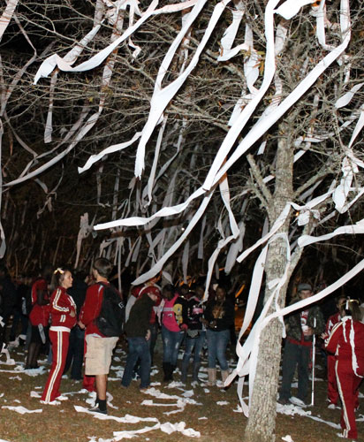 The Northview Chiefs held a pep rally Thursday night on the school campus, complete with a bonfire and rolling trees Toomer’s Corner style with toilet paper.