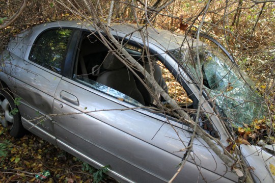 Pictured: This Chevrolet Monte Carlo was discovered deep in a ravine Thursday morning, apparently a long time after a traffic crash. NorthEscambia.com photos, click to enlarge.