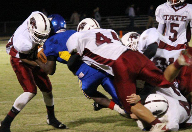 Tate’s first score of the night came on a 29-yard field goal from Hagen Mancuson with 4:55 in the first quarter. Steven Fortner added a touchdown on 9-yard run in the second, followed by a good kick by Mancuso.