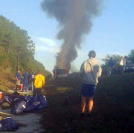 The photograph on this page was taken as the fire was starting; it engulfed and destroyed the bus, according to Tracy Hinote, mother of Chipley player Kyle Hinote. She confirmed that there were no injuries and none of the football equipment was lost. She said that several players did lose their personal items on the bus, such as jackets