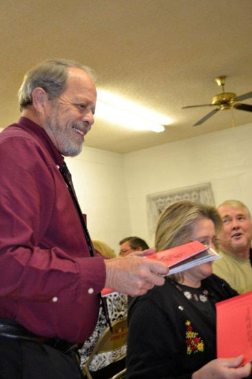 Mike Hanks from the First Baptist Church of Bratt led the crowd in Christmas carols as his wife Gayle Hanks played the piano, and a group from the Walnut Hill Mennonite Church treated the crowd to Christmas carols.