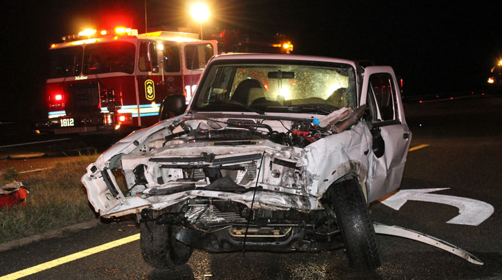 Pictured: Two North Escambia residents were injured in this two vehicle crash Saturday night on Highway 29 at Barrineau Park Road in Molino. NorthEscambia.com photos, click to enlarge.