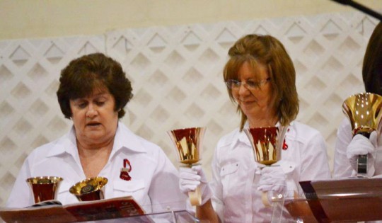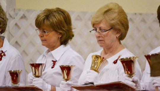 The bells were ringing with the spirit of Christmas Wednesday night as a newly formed hand bell team at the First Baptist Church of Bratt performed for the church’s annual Christmas dinner.