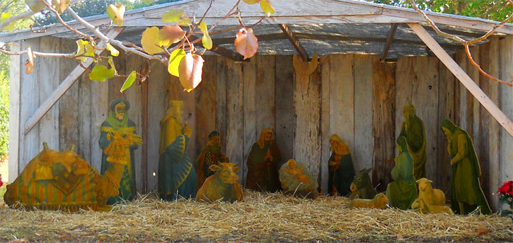 Pictured top: A paper nativity scene that has been displayed for over 40 years. Pictured inset: A 1959 Popular Science advertisement offering the set for sale. Courtesy photos for NorthEscambia.com, click to enlarge.