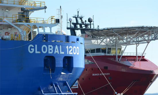 Pictured top: Pensacola Mayor Ashton Hayward announces his plans Thursday for the Port of Pensacola. Pictured below: Two vessels docked at the port. Submitted photos for NorthEscambia.com, click to enlarge.