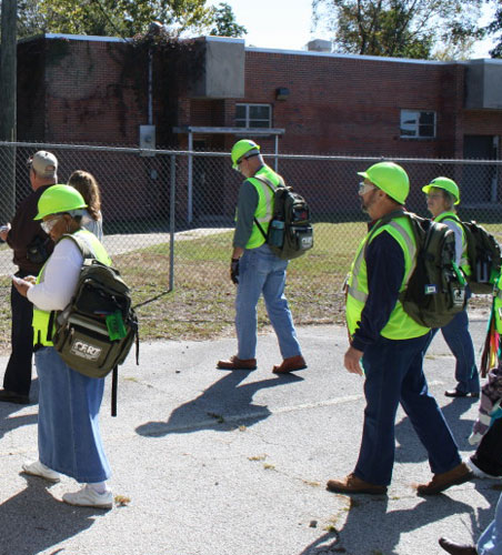 Pictured top: Century town council member Sandra McMurray Jackson (left) and another CERT volunteer held a disaster “victim” during a CERT disaster drill. Pictured inset and below: CERT volunteers search for tornado victims during a drill. NorthEscambia.com file photos, click to enlarge.