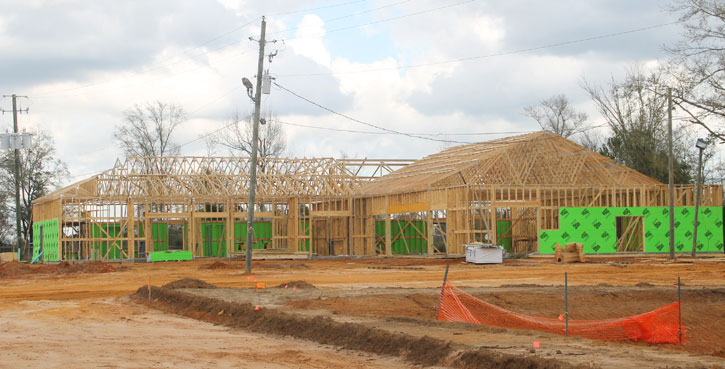 To Creekbather: I don’t understand your comment. The library is going to be IN the school building. The new structure going up will be the tax collectors office. I am not in the construction business but every new building/house I have ever seen built starts with wood.