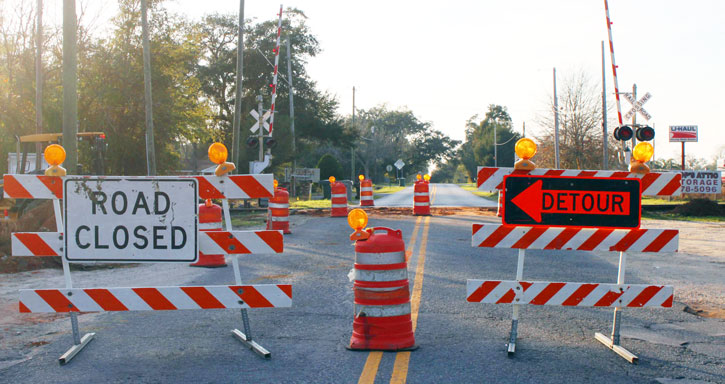 10 Mile Road west of Highway 29 is closed to Cove Avenue while crews from Roads, Inc. of Cantonment work on a railroad crossing. Work is expected to be complete by February 17.