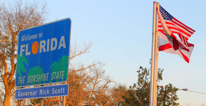 The “Welcome to Florida” sign on Highway 29 has been cleaned up — no longer declaring Florida’s governor to be a “prick”.