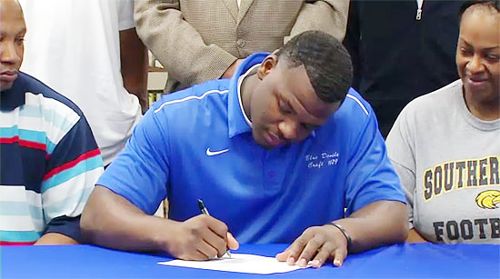The Escambia County High School Blue Devil’s Dalvin Craft signed his letter of intent to play for Southern Miss.