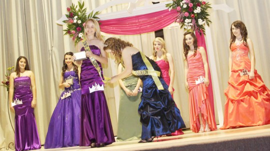 Picture top: (L-R) Second Runner-up Lillie Allen, First Runner-up Raegan Harrell, Junior Miss Ernest Ward Middle School Jadlyn Agerton and Third Runner-Up Alexys Smith. Pictured left: Agerton awaits the judges’ decision backstage during Friday night’s Junior Miss Ernest Ward Middle School pageant. Pictured below: Allen is crowned third runner-up. NorthEscambia.com photos, click to enlarge.