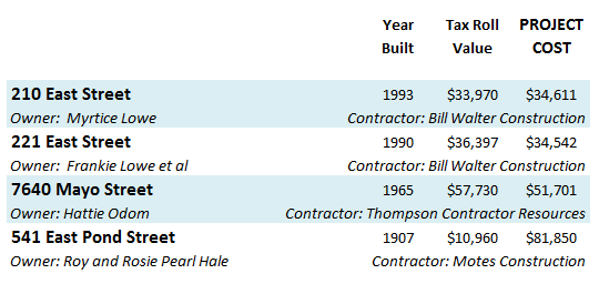Other homes selected for rehabilitation will range in cost from $34,611 for a home at 210 East Street to $51,701 for a home on Mayo Street (pictured inset). The project for each of the homes is detailed in the graphic below.