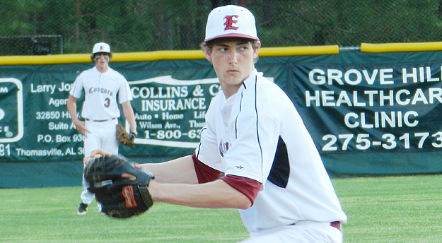 The Cougar’s Michael Thompson pitched seven in Grove Hill allowing two earned runs on four hits, striking out five and walking three.