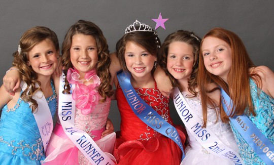 Junior Miss (age 8-9): (L-R) 3rd Runner Up/Casual Wear Winner: Sierra Madison Hutto; 1st Runner Up: Savannah Mercedes Blackburn; Queen: Maegan Mallett; 2nd Runner Up: Caroline Elizabeth Harp; and Photogenic: Sunny Alexis Maher.