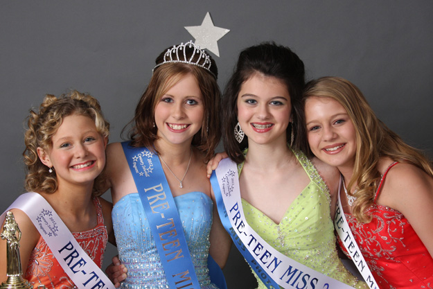 Pre-Teen Winners (age 10-12): (L-R) 1st Runner Up: Joy Elizabeth Flanders; Queen: Kassidy Lynne Adams; 2nd Runner Up/Photogenic: Tori Knapp; 3rd Runner Up/Casual Wear Winner: Brittanie Grace Johnson.