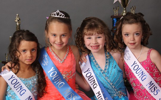 Young Miss Winners (age 6-7): (L-R) 1st Runner Up-Laiken Marie King; Queen/Casual Wear Winner: Nevaeh Skye Brown; 2nd Runner Up/Photogenic: Emma Breanna Barrow; and 3rd Runner Up: Aleigh Thornton.