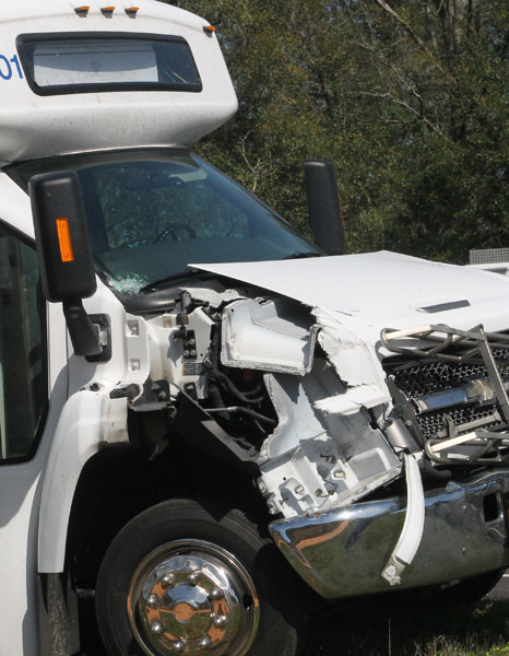 Pictured above and below: Four people on this ECAT bus were not injured when the bus struck a horse on Highway 29 in McDavid Monday afternoon. NorthEscambia.com photos, click to enlarge.