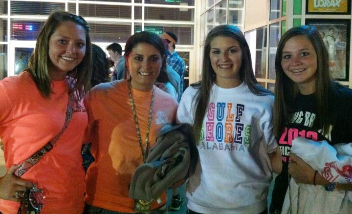 Pictured top: (L-R) Megan Ryan, Kolbi Cobb, Kendal Cobb and Mallory Ryan await the midnight premiere of The Hunger Games in Pensacola. Pictured inset: Kara Hardin (left) and Haley Simpson with their tickets. Pictured below: (L-R) Charleigh McPherson, Lauren McCall and Taylor Rigby at a pre-screening party. Submitted photos for NorthEscambia.com, click to enlarge.