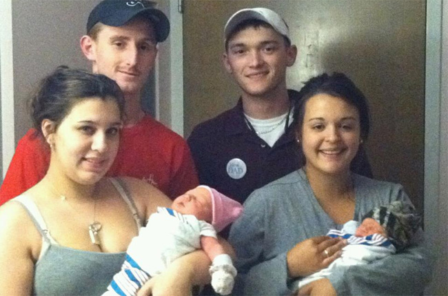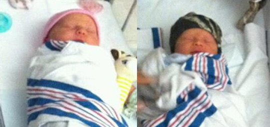 Pictured on the left are Aaron and Britany Chancery with their daughter Riley Erin Chancery, while Billy and Ashley Gilly are on the right with their son Tripp Shiver Gilly. Pictured below: Riley Erin Chancery (on left) and Tripp Shiver Gilly. Submitted photos for NorthEscambia.com, click to enlarge.