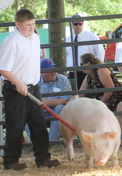 The Grand Champion Market Swine was exhibited by Matthew Smith (pictured left), a 13-year old seventh grader at Ransom Middle School. Matthew, the son of Randal and Ginjer Smith, also enjoys band, hunting, fishing and trail raiding. The Barrineau Park 4-H Club member’s 260 pound pig sold for $962 ($3.70/lb) to Gulf South Automotive.