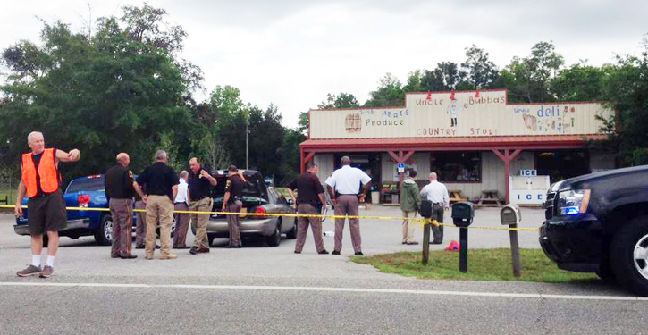 Pictured: The scene at Uncle Bubba’s Country Store in Seminole, Ala., last Tuesday after a Cantonment man was shot by a Baldwin County deputy. Photo by Anthony Pura, WEAR 3, for NorthEscambia.com, click to enlarge.