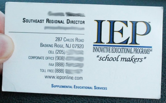 Both men were confirmed to be employees of Innovative Educational Programs (IEP) in Basking Ridge, New Jersey. One of the men, according to his business card (pictured), is the company’s “Southeast Regional Director”.