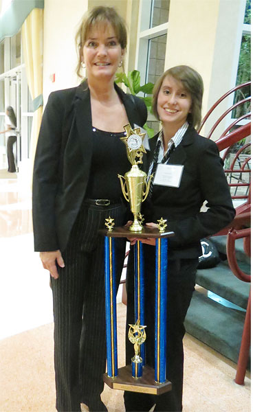 Pictured: Northview’s Kasie Braun with her first place state FBLA trophy and her mother, Gine Braun. Submitted photo for NorthEscambia.com, click to enlarge.