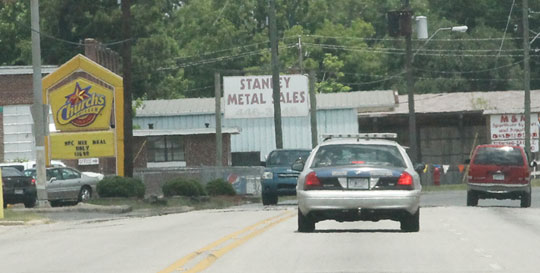 Pictured: An Alabama State Trooper on patrol in Atmore Wednesday afternoon on North Main Street at Jacks Springs Road. NorthEscambia.com photo, click to enlarge.