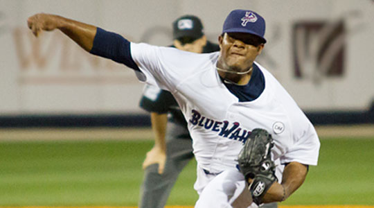 Pictured: Daniel Corcino struck out a season-high nine batters over six innings Sunday for the Blue Wahoos in Jacksonville. Photo by Chris Nelson for NorthEscambia.com, click to enlarge.