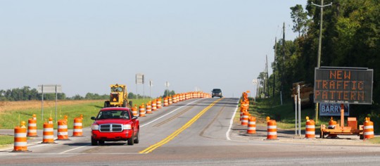 Pictured: Lanes have been shifted as part of the construction of a turn lane from Highway 97 to south Highway 29 in Molino. NorthEscambia.com photo, click to enlarge.