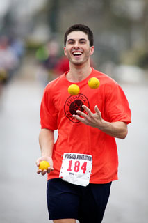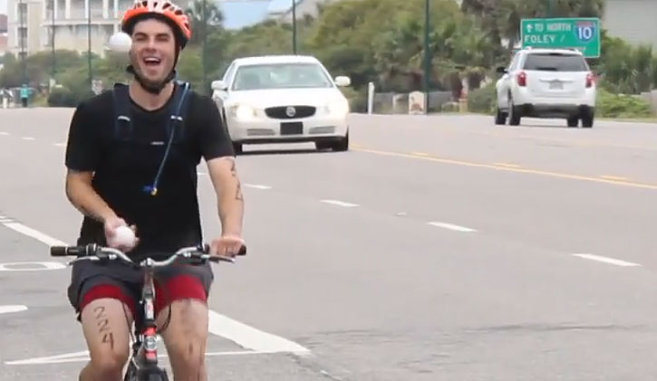Joe Salter, 31, has made the national news for completing a recent triathlon — while juggling (video below). Salter juggled three balls while swimming a quarter mile, juggled two balls in one hand while biking 17 and ran another four miles still juggling. And he did it all in the respectable time of 1 hour and 57 minutes for a world record.
